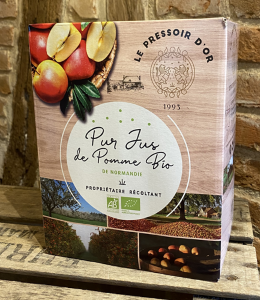 Jus de Pomme BIO 25CL Le jus de pomme du Pressoir d'Or est transformé avec des pommes issues de notre verger conduit en agriculture biologique. Ce jus de pomme est le résultat d'un mélange d'environ 3 variétés de pommes. Aucun sucre n'est ajouté. Lire la suite